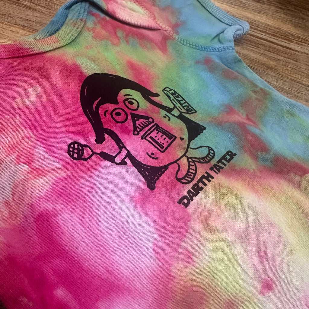 Our new Darth Tater Illustration printed on a ice dyed onesie!