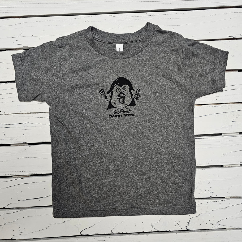 Darth Tater design hand screen printed on super soft kid's t shirts.