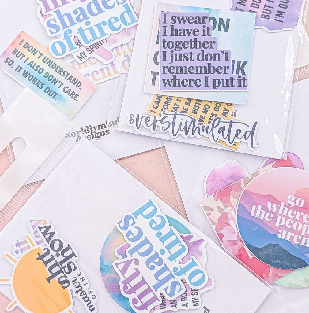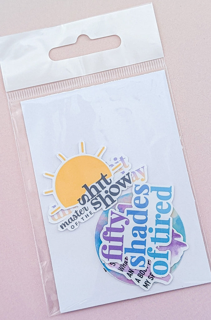 5 mini sassy themed stickers. Each sized approximately 1.5 inches. Laminated with holographic shine. Water and tear resistant.